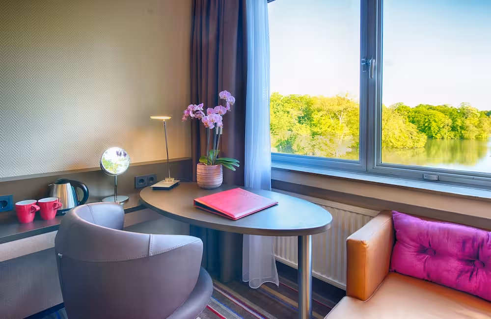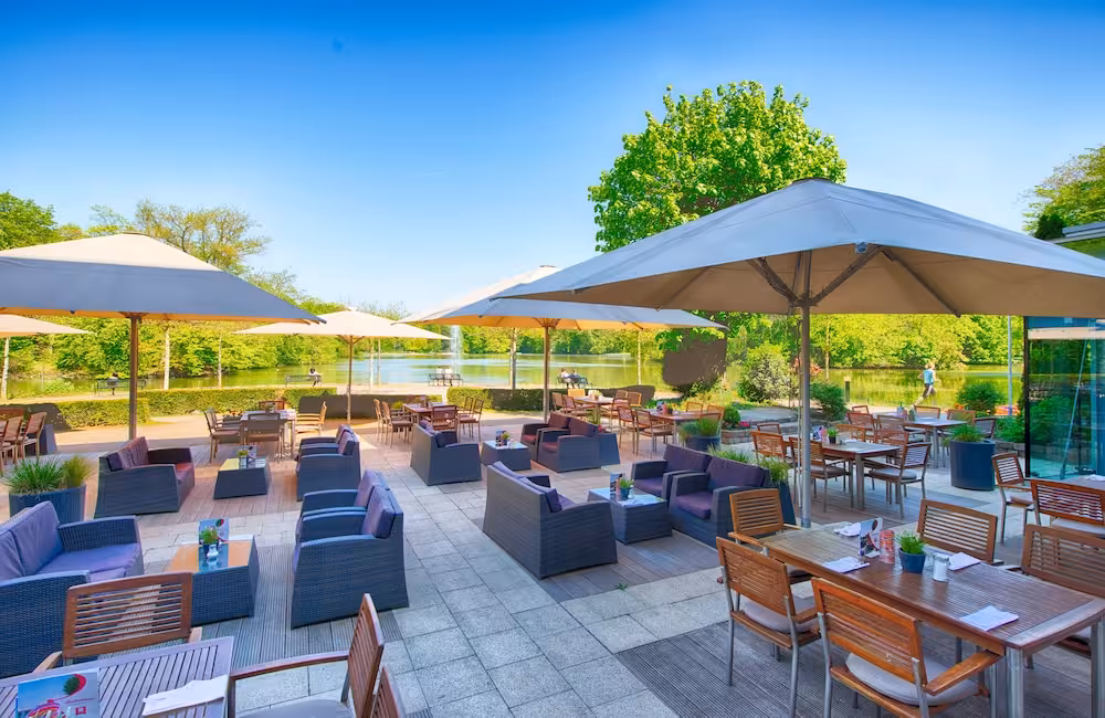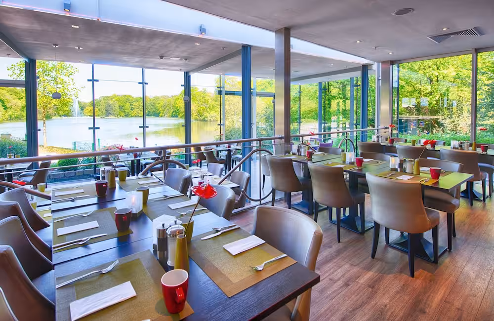 This city hotel is situated in the Kölner Stadtwald park. The Cologne West motorway junction can be reached in a matter of minutes as can the city centre. The hotel, with its peaceful, comfortable rooms, in part, looking out over the lake, offers the ideal opportunity to relax in a country atmosphere. This hotel is surrounded by greenery, right on the Stadtwaldweiher (the park's lake) and set in beautifully tended parkland. Despite this relaxing location, away from the noise and bustle of the city, the hotel offers easy access to the motorway and city centre, with the railway station, cathedral and trade fair grounds all approximately 6 km from the hotel. The hotel also offers easy access to Cologne/Bonn airport.