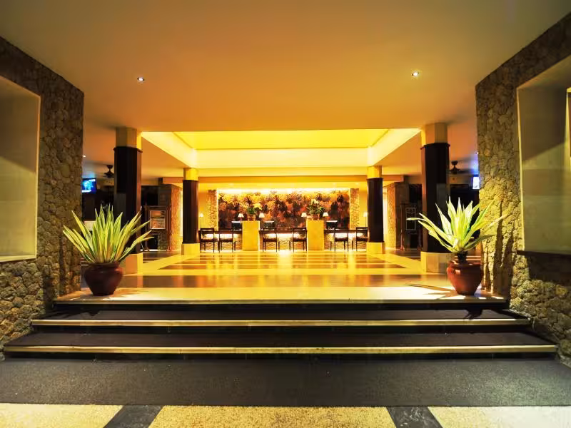 The hotel is located on the beautiful beach of Cape Senggigi, only a few minutes' drive from the main area of Senggigi and approximately a 15-minute drive from Lombok's Selaparang airport and the capital city of Mataram. Senggigi Art Market is a 5-minute drive away.